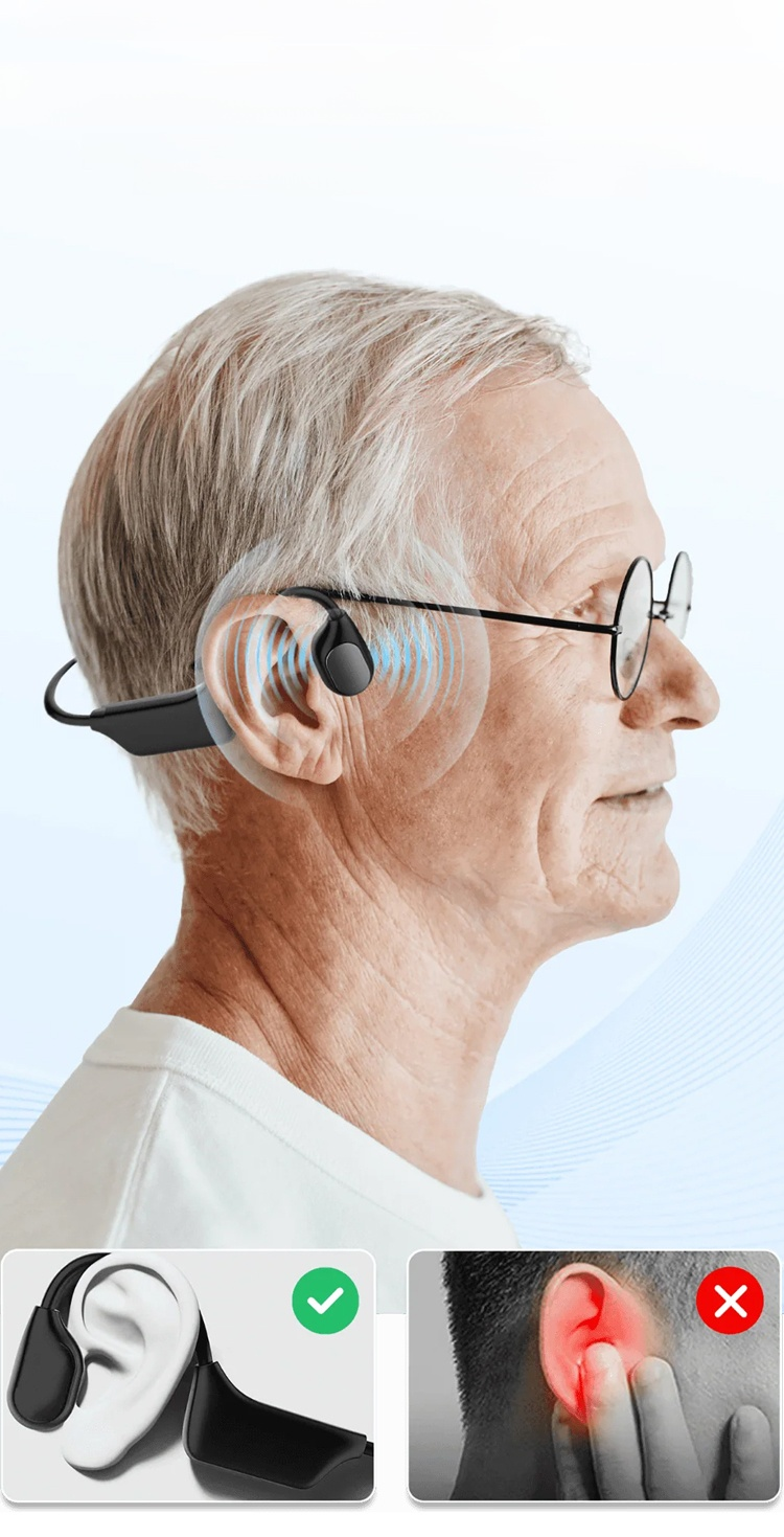 ✅ Bone conduction technology, so both ears remain completely silent, as sound waves are transmitted directly to the inner ear through the skull
