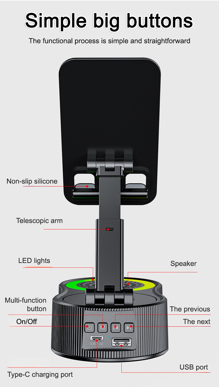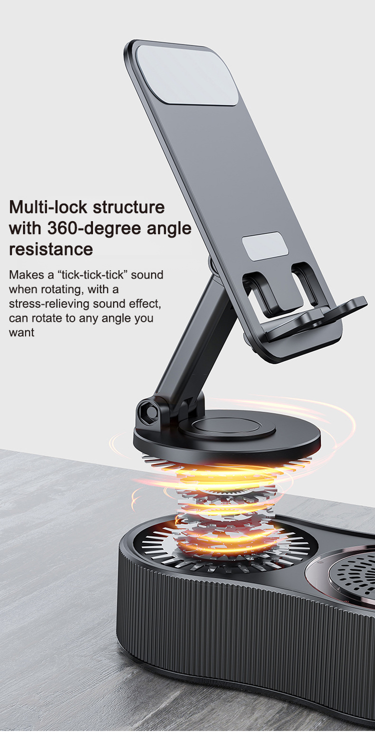 🔄 The 360° rotation function allows you to adjust the viewing angle to suit any scenario. 📱 The height-adjustable design allows you to freely adjust the phone's height for the best viewing experience, whether for work or entertainment.