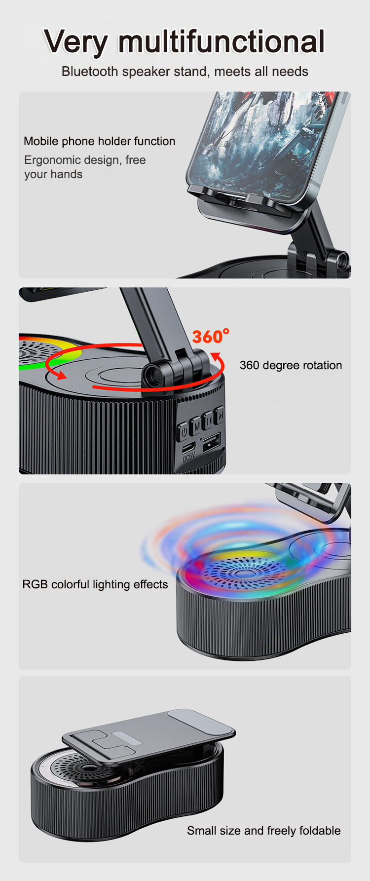 ✨【360 degree rotating mobile phone holder with lifting function】Sturdy and durable, height adjustable, rotatable, hands-free for effortless listening! Enjoy high volume and immersive sound quality.